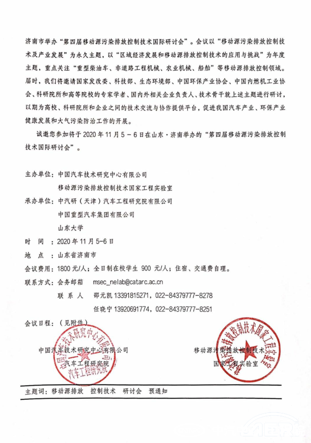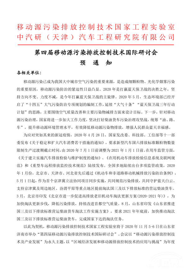 第四屆移動(dòng)源污染排放控制技術(shù)國際研討會(huì )預通知