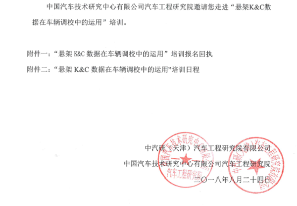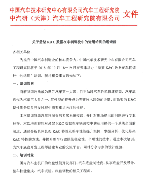 關(guān)于懸架K&C數據在車(chē)輛調校中的運用培訓的邀請函